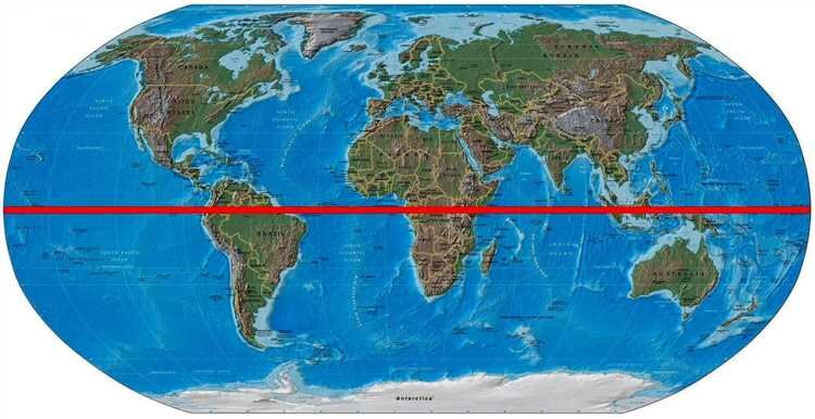 Топографическое деление планеты: место, где экватор разделяется на две равные части