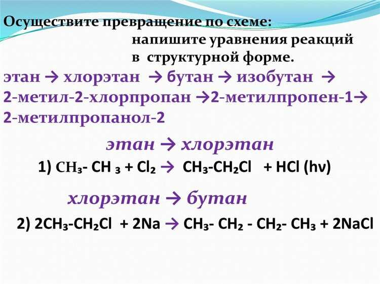 Рассмотрим процесс преобразования хлорэтана в пропан – одну из важных и широко используемых технологий в химической промышленности. В данном разделе мы изучим особенности этого процесса и его результат.