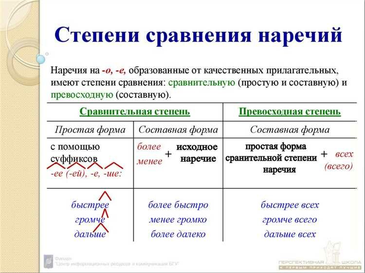Наречия, в свою очередь, позволяют указать обстоятельства, в которых происходит действие или находится объект. Они добавляют дополнительную информацию о способе совершения действия, месте, времени, интенсивности и др. Наречия помогают нам оживить рассказ и передать эмоциональный оттенок. Они могут быть использованы для описания как физических, так и психологических состояний, действий и событий.