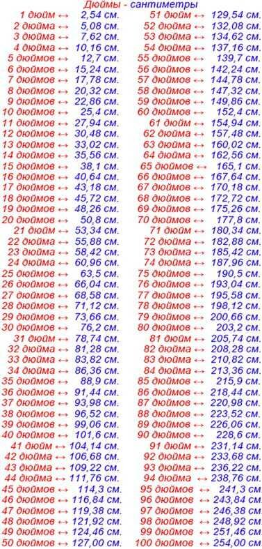 - Соотношение 1 дюйм = 2,54 сантиметра.