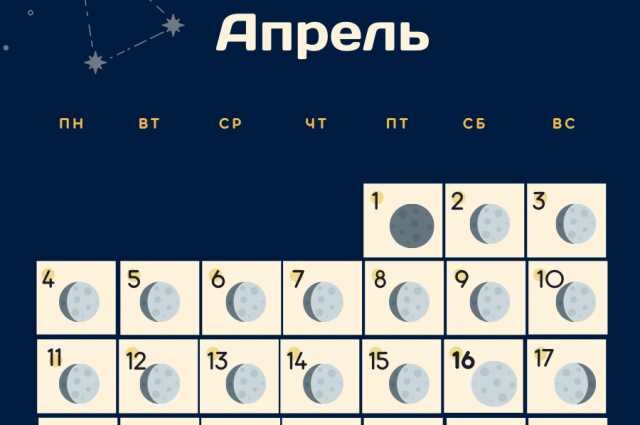 1 апреля: В начале апреля луна будет в фазе Новолуния, когда она не видна с Земли. Это будет период начала нового цикла лунного освещения.